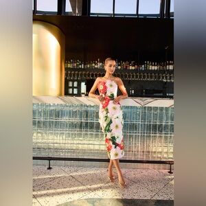 Elliatt Solara Strapless Midi Dress in Pink Floral Size XS NWT