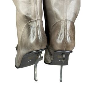 Jeffrey Campbell Dulcimer Gray Pewter Leather Mid-Calf Sculpted Heel Boots 9.5