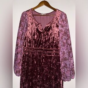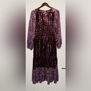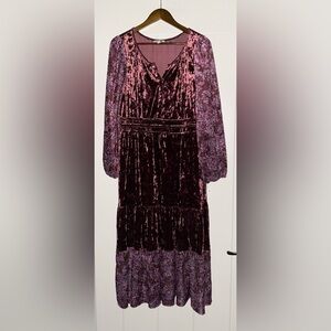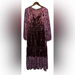 Frye and Co. Floral Burnout Velvet Burgundy Dress Midi Flounce L Boho Cowgirl