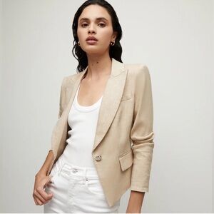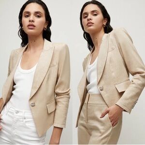 Our best-selling Hosanna jacket is back, now in linen. This classic piece features Ingle-breasted tailoring, seaming at the waist for a flattering finish, and a cris lotched lapel. Its linen blend keeps it easy and cool year-round. This chic style pair well with everything from floral dresses to jeans.