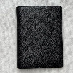 💙NEW Coach Passport Case Travel Wallet Black Signature Canvas w/Patches CY902
