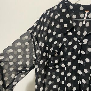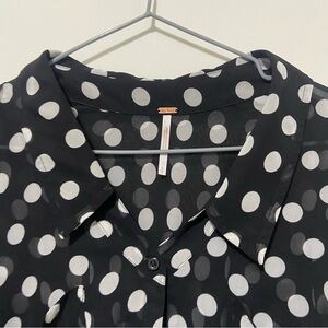 Free People Black/White Sheer Polka Dot Easy Rider Blouse Size Small