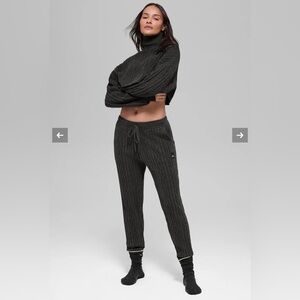 Alo Yoga Cable Knit Winter Bliss Pant Dark Heather Grey Sz L NWT