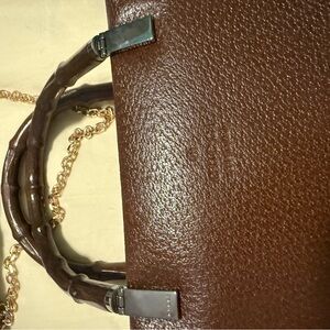 Fendi Denim Tote with Brown Leather Straps and Gold Logo Charm