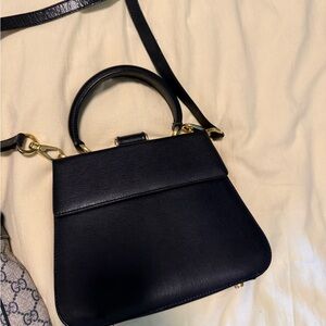 Classic Fendi tote in blue denim. Features brown leather shoulder straps. Gold-tone Fendi logo charm accent. Casual and versatile carryall.