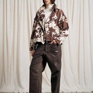 Casual Women's Cow Print Denim Jacket Western Distress contemporary