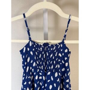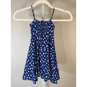 Reformation Kids Blue White Dalmatian Print Tiered Button Front Dress Size 3Y