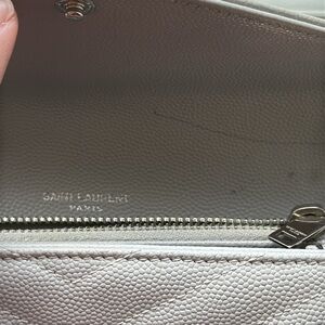 Authentic Saint Laurent Long Wallet Gray Leather