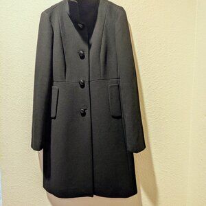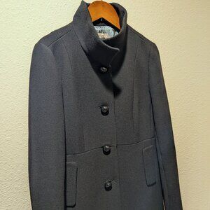 Stylish coat made from Italian milled wool. The silhouette and details make it look like something a Parisian gamine would wear.