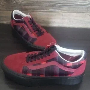 New Vans Old Skool Stacked Red Platforms Womens Shoes Size 8 Velvet Plaid Grunge
