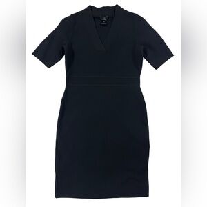 Ann Taylor Factory Petite Black Sheath Dress V-Neck Short Sleeve Career SP Mint