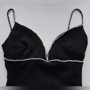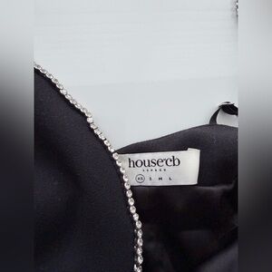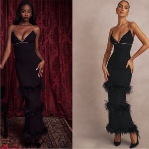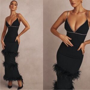 House of CB Maricel Crystallized rhinestone Fringe Ostrich feather Maxi Dress XS