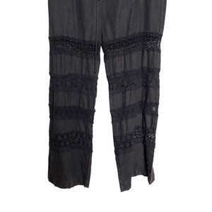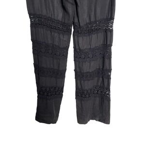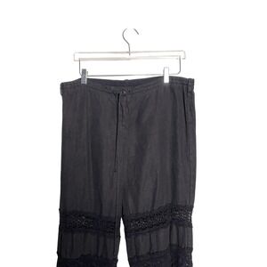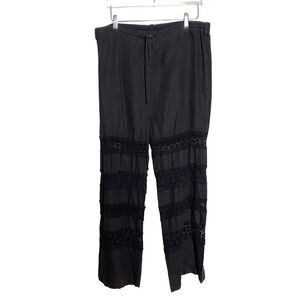 Johnny Was Womens 100% Linen Lace Lightweight Pants Size M Black