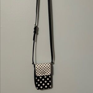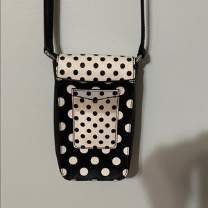 Kate Spade Black and White Polka Dot Crossbody Bag/cell phone bag. Adjust strap.