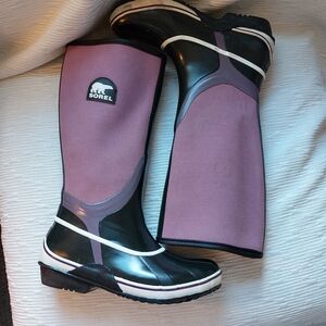 Sorel Black and Purple Tall Rain Boots Size 7