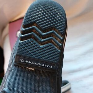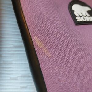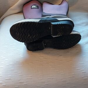 Sorel boots with a sleek design. Black base with purple accents. Ideal for wet weather. Great condition normal wear scuffs, staining discoloration... I like to call it character anyway ty 😊 and plz see all pics as part of description