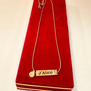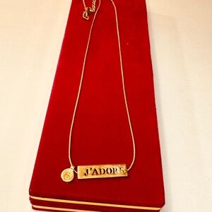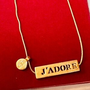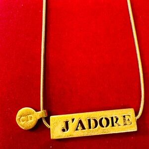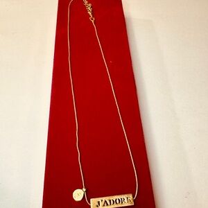 Chic Dior necklace with a gold J'ADORE pendant. Adds elegance to any look.