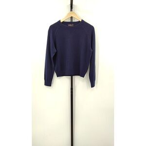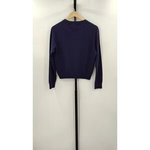 Quince Women Mongolian Shrunken Cashmere Sweatshirt Navy Sleeved Top M