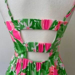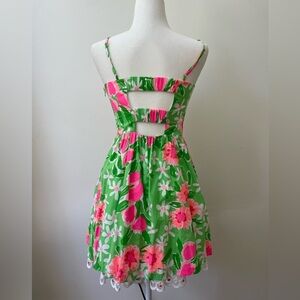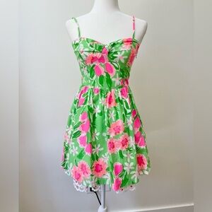Lilly Pulitzer Pink and Green Floral Mini Dress Cotton Tropical Summery Size 2