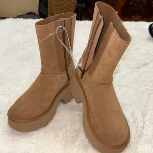 UGG , chestnut suede Heeled Boots, BRAND NEW !! no box, size 8. (8.5 runs big )