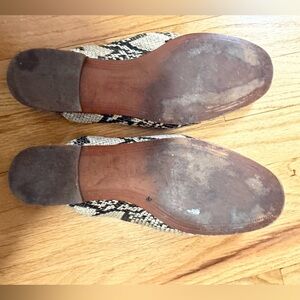 Slip-on mules with textured snake-print upper. Gold-tone horsebit accent across vamp. Cushioned insole with branded footbed. Versatile style that dresses up or down.