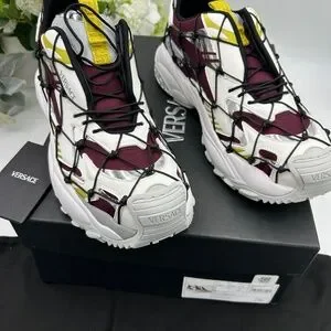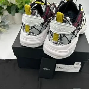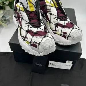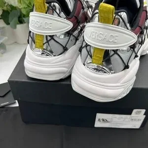 Chic Versace sneakers with white and yellow highlights. Perfect for a bold look. Absolutely new never worn comes with original box and dust bags. Originally over $1200.