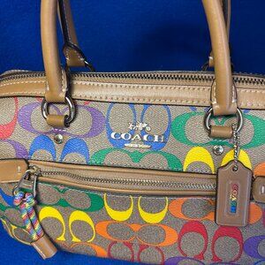 Coach Rowan Satchel in Signature Canvas with Rainbow Motif – Excellent Condition
