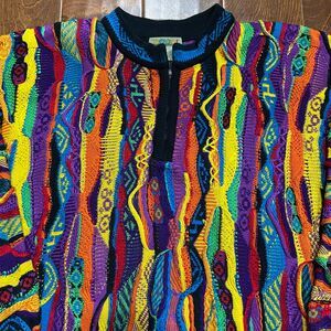 COOGI Australia Vintage 3-D Knit 1/4 Zip Multicolor Sweater Cotton Men's Size XL