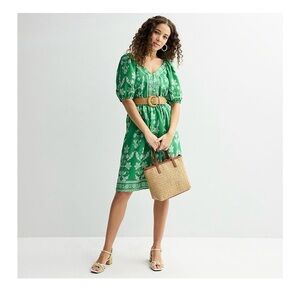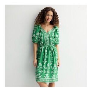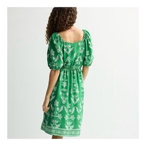 Draper James Placement Print Green Floral Puff-Sleeve Midi Dress