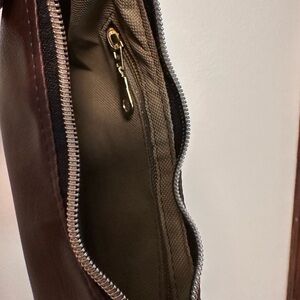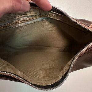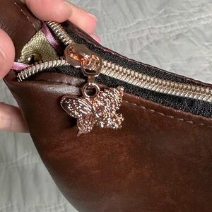 Brown hand made purse rose gold butterfly zipper pull inside pocket