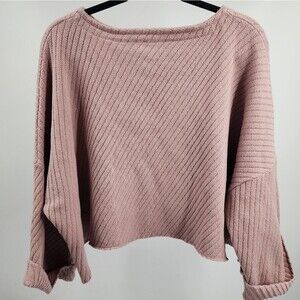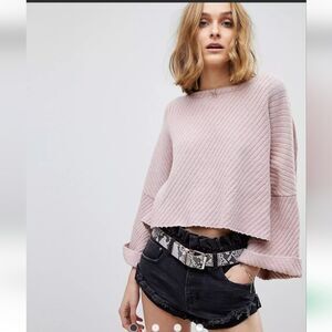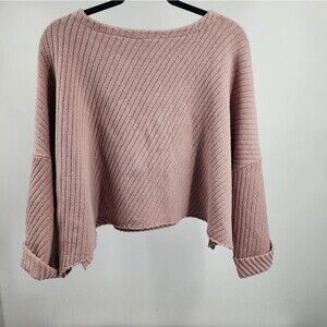 Free People I Can't Wait Crop Ribbed Sweater Cuffed Wide Sleeve XS Pink
