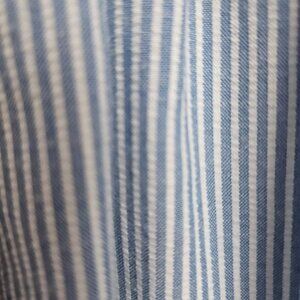 This darling vintage Youngland dress features the iconic sailor silhouette that never goes out of style. Perfect for spring outings, summer holidays, or vintage-inspired photoshoots. This vintage Youngland Nautical Sailor Seersucker Dress Blue & White with Red ribbon trim does not have a size tag, please reference the measurement photos. A small, silver-tone metal hook and corresponding round eyelet are located at the neckline. This allows the white sailor collar to meet seamlessly at the center for a polished, "finished" vintage look. Additional photos of the white fabric areas shown for your reference, as it is a vintage piece.