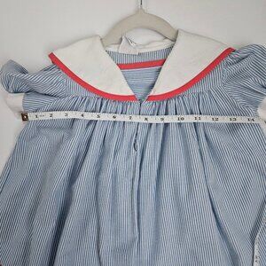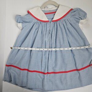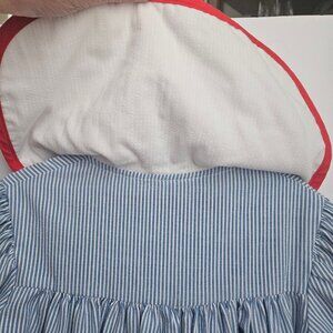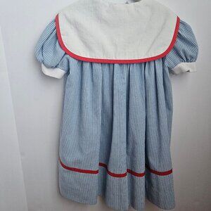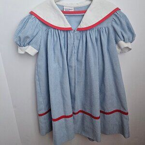 VTG Youngland Nautical Sailor Seersucker Dress Blue & White with Red Trim