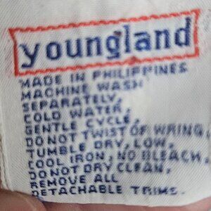 Heritage: Youngland was founded by Sam Landorf in New York in 1949 as a family-run children's dress manufacturer. The brand specialized in "pretty but practical" clothing for girls, often featuring ruffles, bows, and classic patterns.