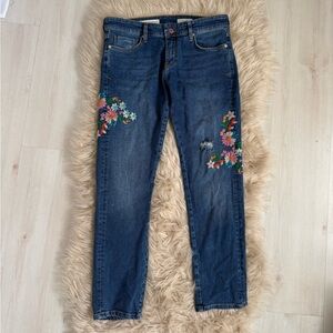 Pilcro and the Letterpress Boyfriend Jeans with Floral Embroidery