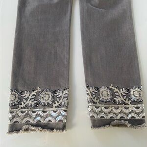 Frank Lyman Gray Embellished Hem Jeans RARE SAMPLE Size M