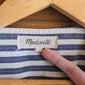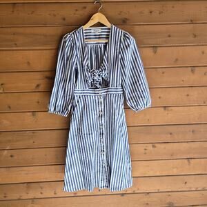 Madewell Cutout Dress Shimmer Stripe Midi Blue Boho Button Front Tie 6 Cottage