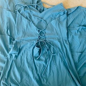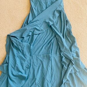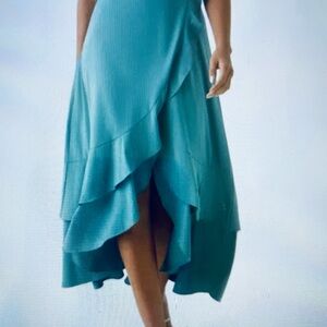 LARGE. HALARA BREEZEFUL LACE UP BACK RUFFLE HEM MAXI DRESS