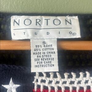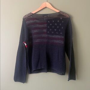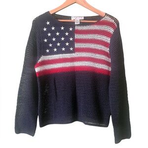 VTG 90s Y2K Norton Mcnaughton Patriotic American Flag Navy Crochet Sweater Sz S