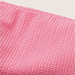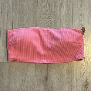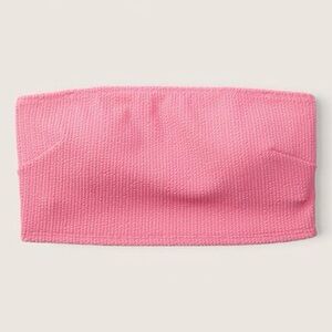 Brand new with tags VS PINK Crinkle Bikini Top from Victorias Secret. Longline bandeau style swim top, strapless and longline with a built in shelf bra with removable padded inserts. Inside is lined. Textured crinkle ribbed swim fabric is a bright bubblegum pink.