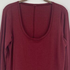 Lululemon Size M (NO SIZE TAG) Red Maroon Anahatasana Scoop Neck Long Sleeve Tee Pima Cotton