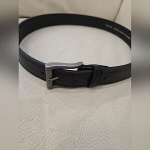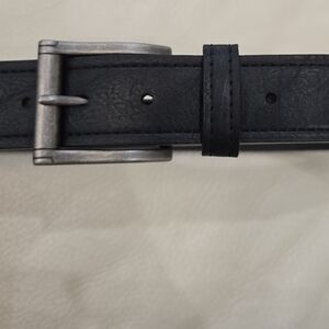 Stylish black leather belt with a classic pewter Matte silver buckle. Perfect for any occasion.