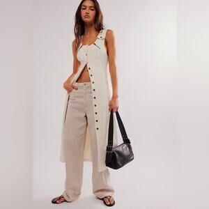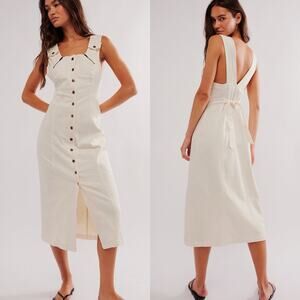 Free People Midi Dress Desert Desire Denim Minimalist Neutral Lagan Look Boho M