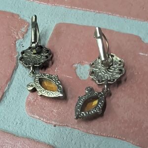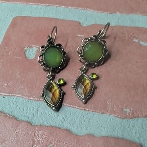 Elegant green gemstone drop earrings with faceted amber-green accents. Lightweight design for all-day comfort. Features vibrant green stones for a fresh, stylish look. Perfect for dressing up casual or evening outfits.