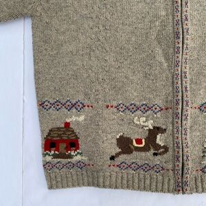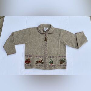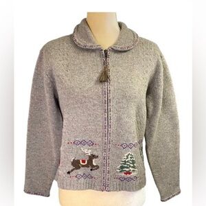 Talbots Vintage Lambswool Zip Front Christmas Sweater Cardigan
