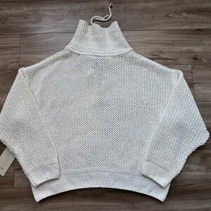 JOIE Cross Stitch Silver Sparkle Cream Knit Pullover Sweater Women’s Sz L NWT