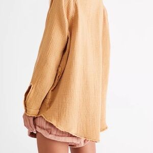The We The Free Summer Daydream Button Down Top features a relaxed, slouchy oversized fit in a soft, breathable 100% cotton textured fabric. Designed with raw hem details and an easy, lived-in feel that works year-round.