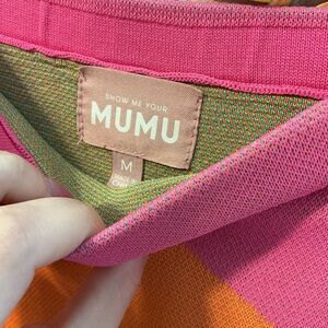 Show Me Your Mumu Island Nights tube dress. Good, pre-owned condition, *only flaw is threading imperfection along the side near the bottom hem (see last photo)*