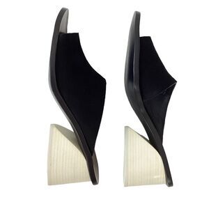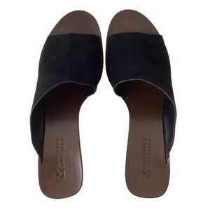 Mercedes Castillo Izar Suede Slide Sandals Black Ivory Block Heel Mule Size 39.5