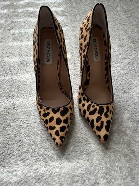 Eye-catching leopard-print pumps with a sleek pointed toe. Versatile dressy style for day or night. Classic silhouette that elevates outfits instantly. Size 7.5. Like new condition only wore one time